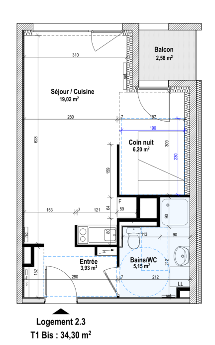 - Surface 34.3 m2