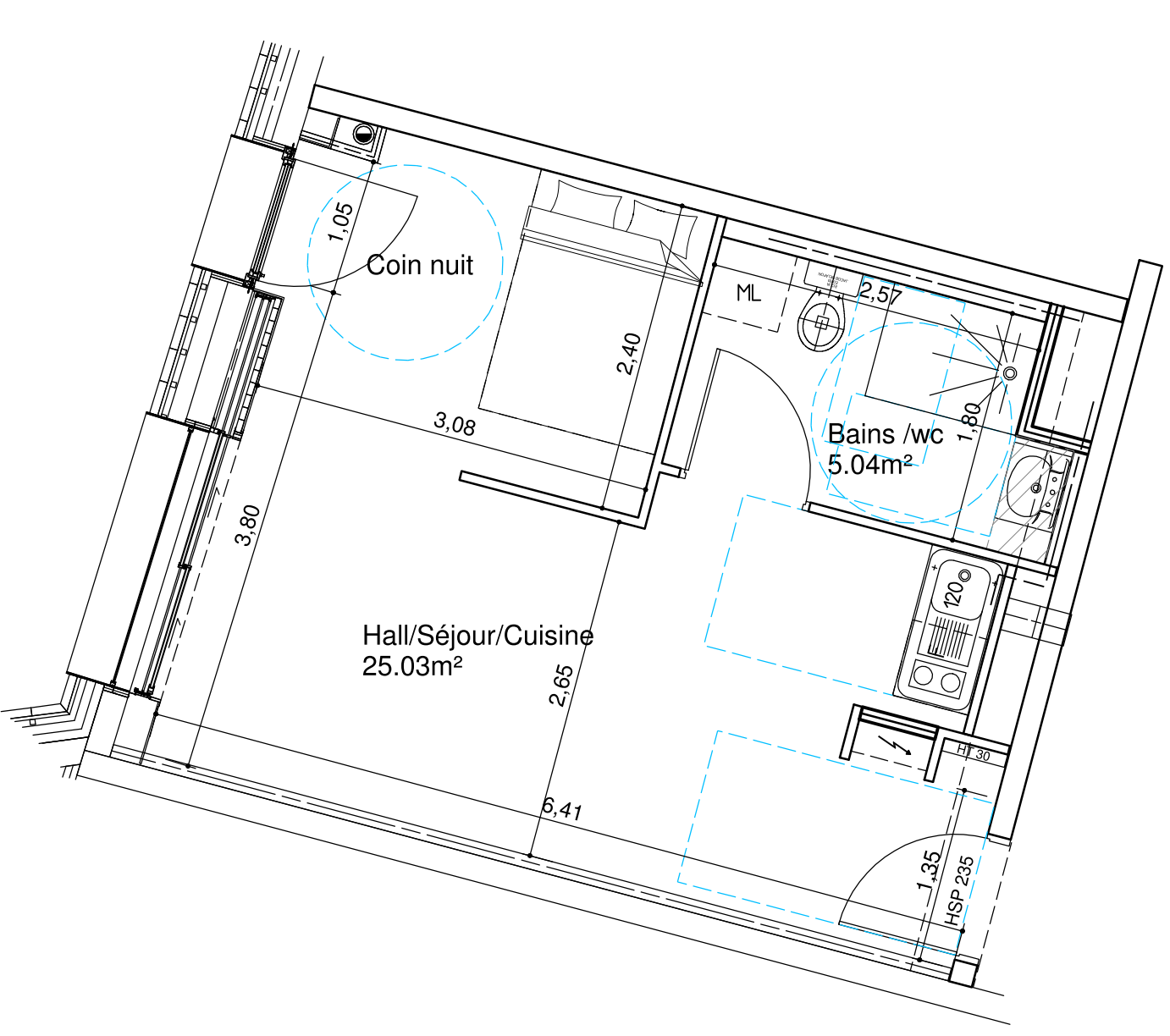 - Une pièce de vie avec coin cuisine équipée