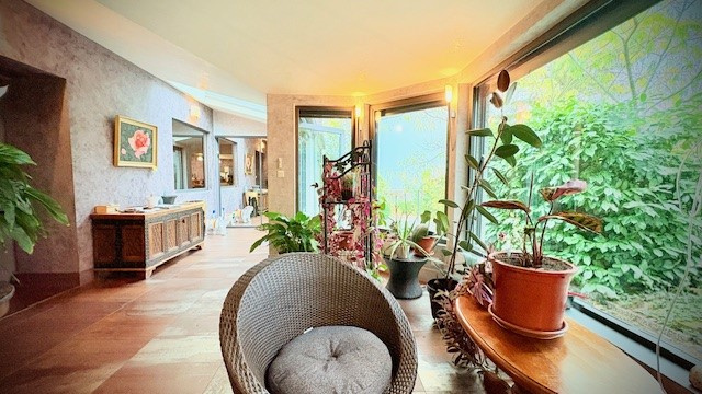 La pièce de vie vaste et chaleureuse orientée SUD, se situe dans une extension récente (12 ans environ) aux lignes contemporaines. Dotée d'huisseries de qualité équipé de brise soleils motorisés. La maison comprend plusieurs salons (cinéma, salle de jeu avec billard...), 3 chambres dont 2 suites parentales avec leur SDB-WC et une SDB, wc indépendant.