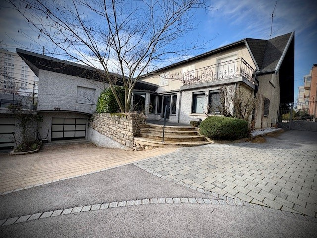 Dès l'entrée, un portail automatisé en ferronnerie travaillée ouvre sur une cour soignée, pavée de matériaux drainants, permettant de stationner aisément plusieurs véhicules. La maison principale de 9 pièces d'une surface habitable de 356,92m2 dispose également d'un sous-sol complet accueillant jusqu'à 3 voitures avec portes motorisées, ainsi qu'une cave à vin, une buanderie, un atelier et de vastes zones de rangement, ces annexes représetant une surface complémentaire de 142,56m2. Son toit et sa chaudière gaz sont rénovés.